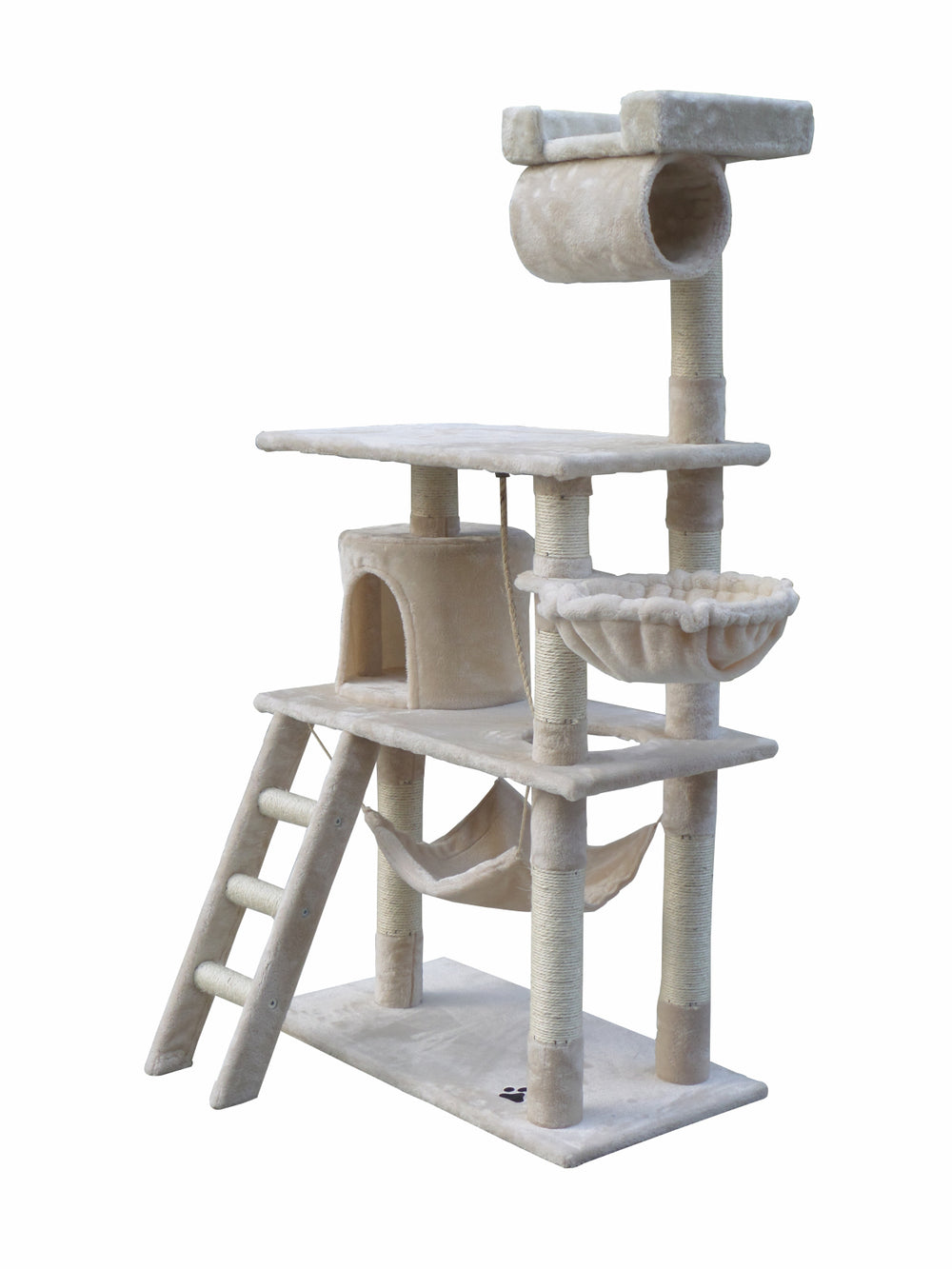 YES4PETS 140 cm Cat Scratching Post Tree W ladder & Hammock-Beige