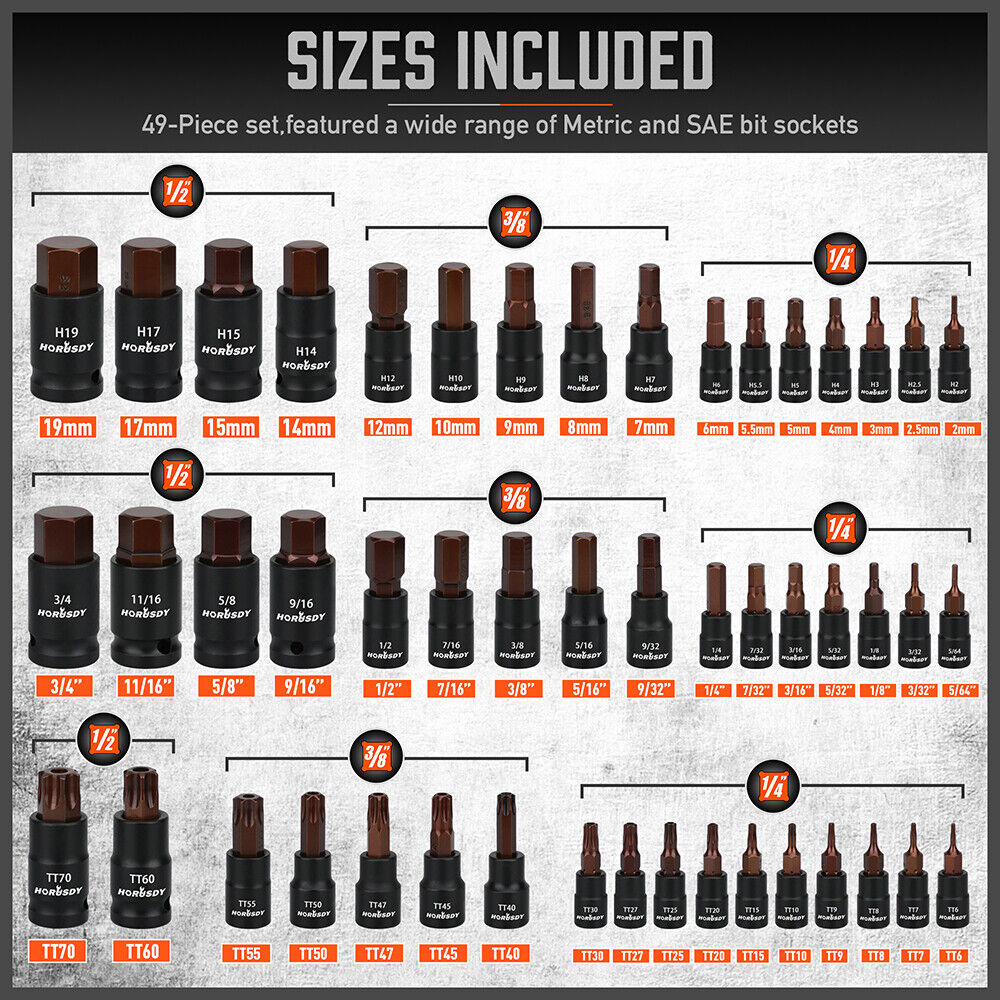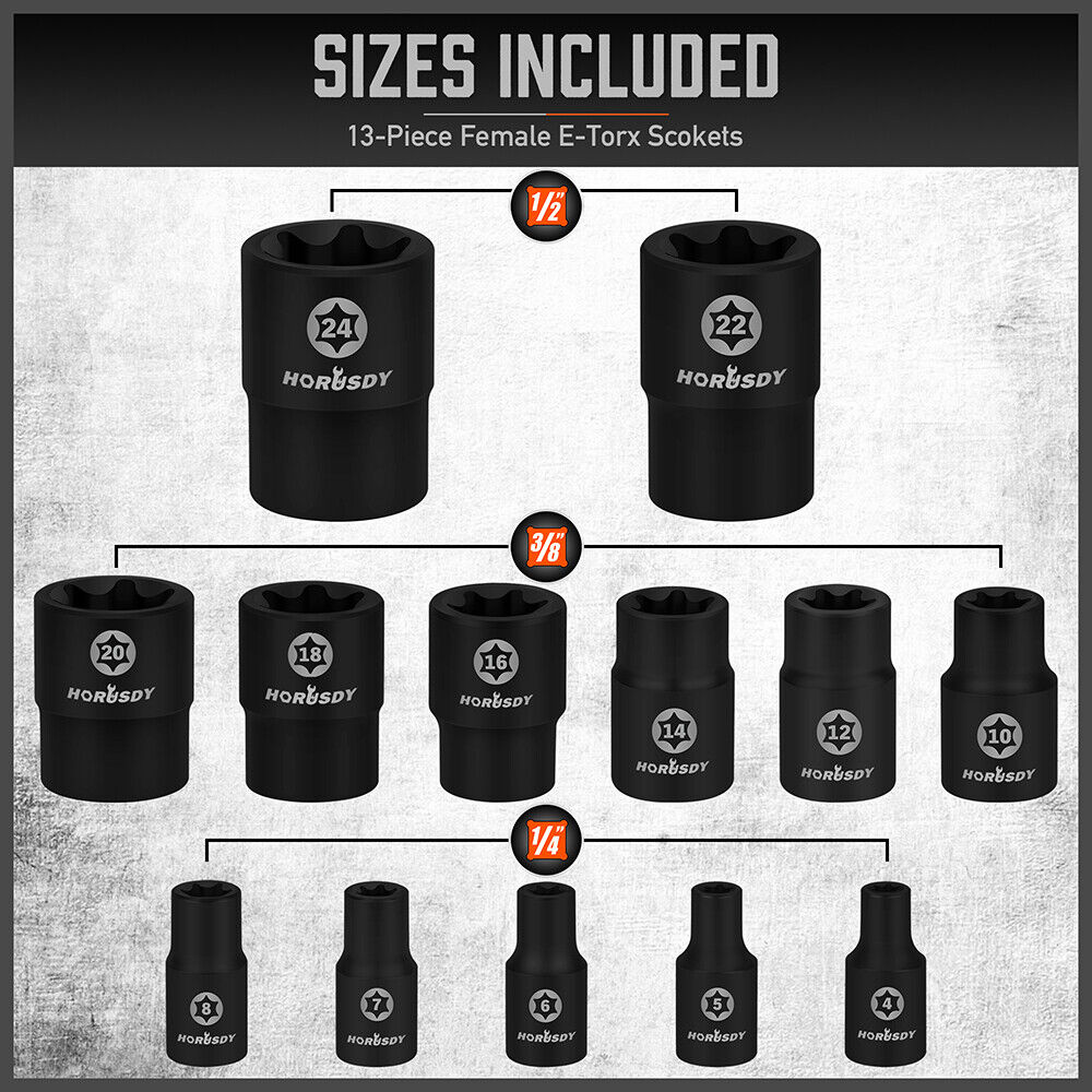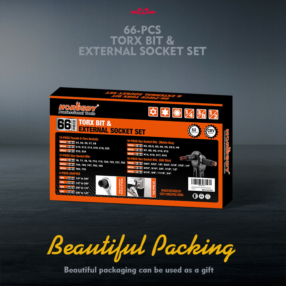 HORUSDY 66Pcs Torx Bit Socket Female External Socket Set Impact Adapter Socket is backordered and will ship as soon as it is back in stock.