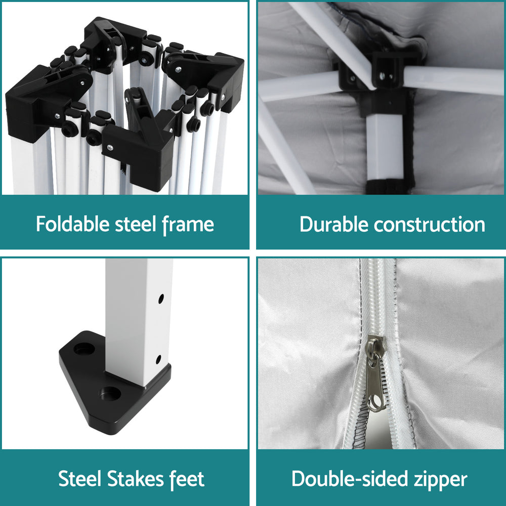 Instahut Gazebo 3x3 Pop Up Marquee Folding Tent Wedding Gazebos Camping Outdoor Canopy White