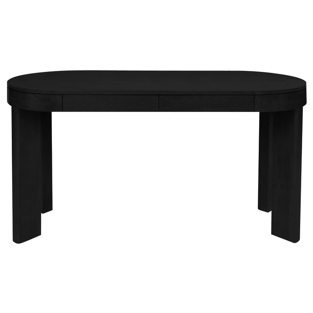 The Brentwood balances modern design with warm, natural materials. Crafted from solid Mindi timber, it features a softly rounded oval top and robust legs that add presence while keeping a refined profile. Two flush front drawers integrate neatly into the apron for discreet, everyday storage of stationery, devices, and documents. Drawers open smoothly and keep the worksurface clear.