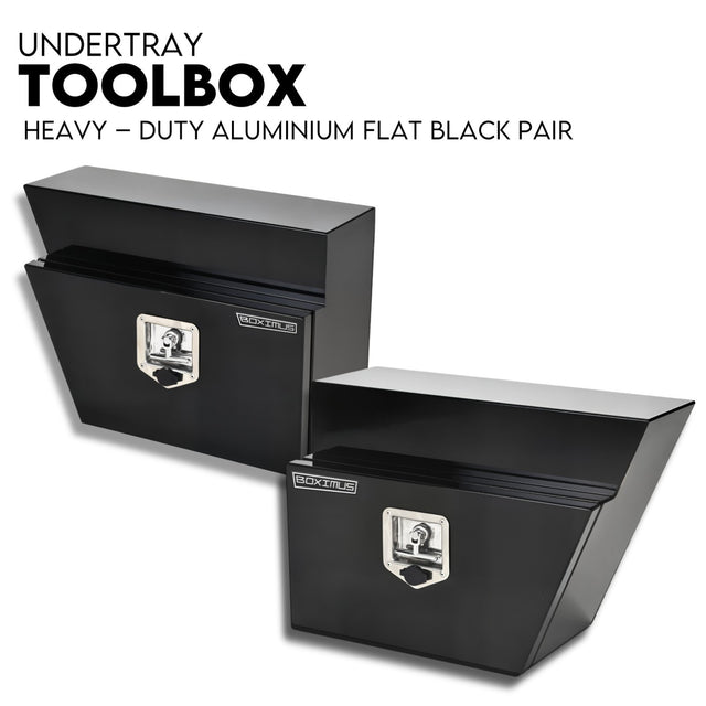 Under Tray Tool Box Underbody Pair Set 600mm Black Aluminium