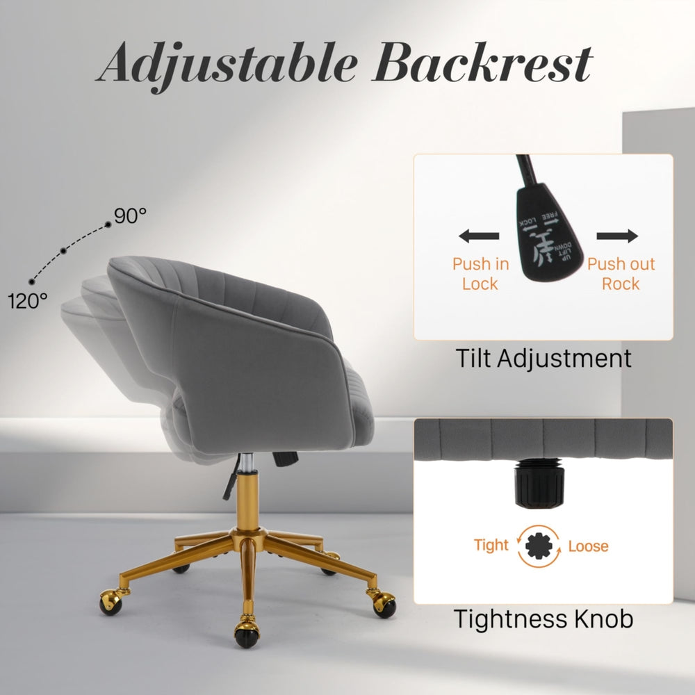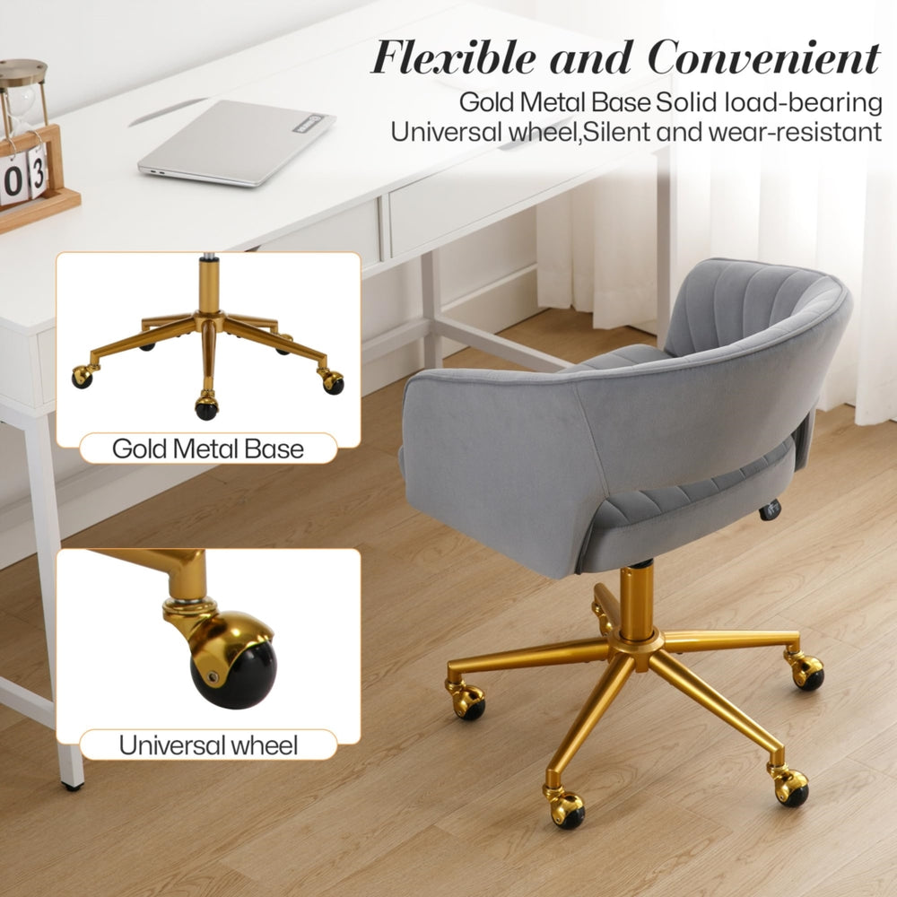 [Stylish Design with Stability] Boasting a stylish and full-bodied design, this chair is accentuated by a golden metal base that adds to its visual appeal and reinforces its durability. The five-star foot design significantly enhances stability and support, making it user-friendly.