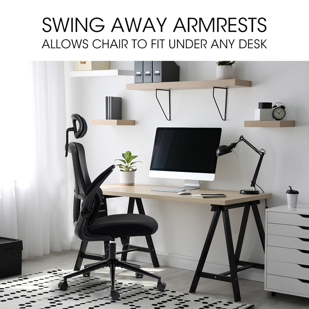 - Swing away armrests to fit the chair under any desk