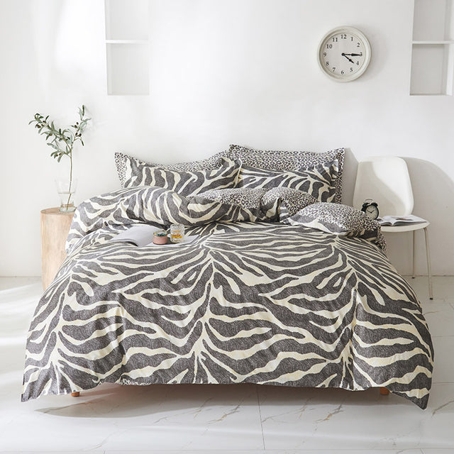 Grey Leopard Pattern 3-Piece Polyester Duvet Cover Set with 2 Pcs Pillowcases - Elegant Bedding, Machine Washable, 173x230cm Duvet + 51x76cm Pillowcases