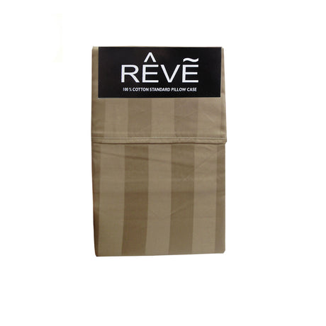 Pair of Reve 100% Cotton Standard Pillowcases 48 x 74 cm Wide Stripe Latte