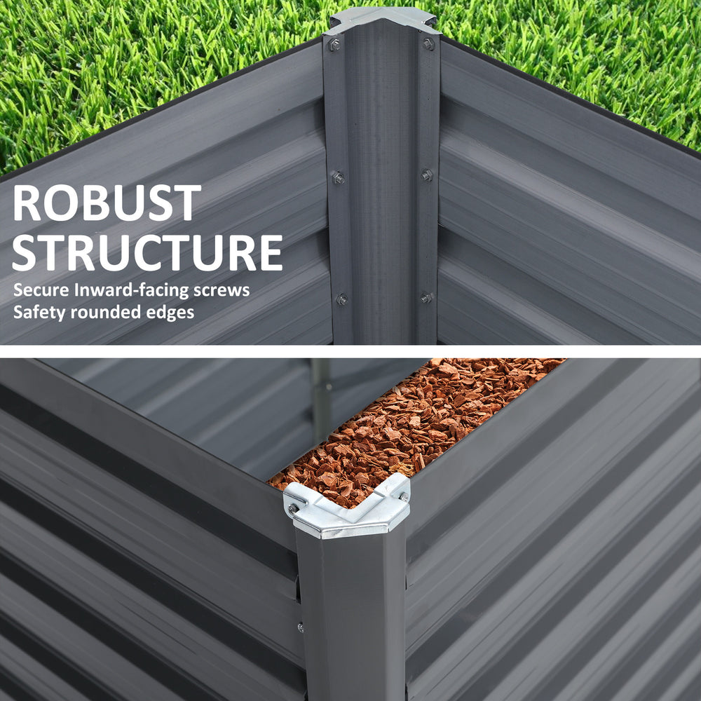 Home Ready 2 Set 2-in-1 Raised Garden Bed Galvanised Steel Planter Grow Veggie Plant Flowers 240 x 80 x 77cm - Grey