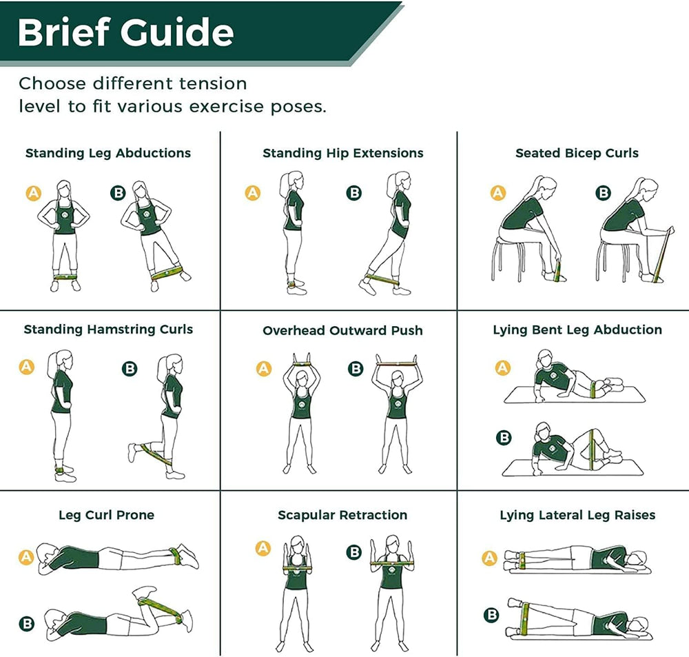 Elastic workout bands resistance offers multiple possibilities for a complete workout and can be used to train arms back legs glute butt lift and other muscle groups.