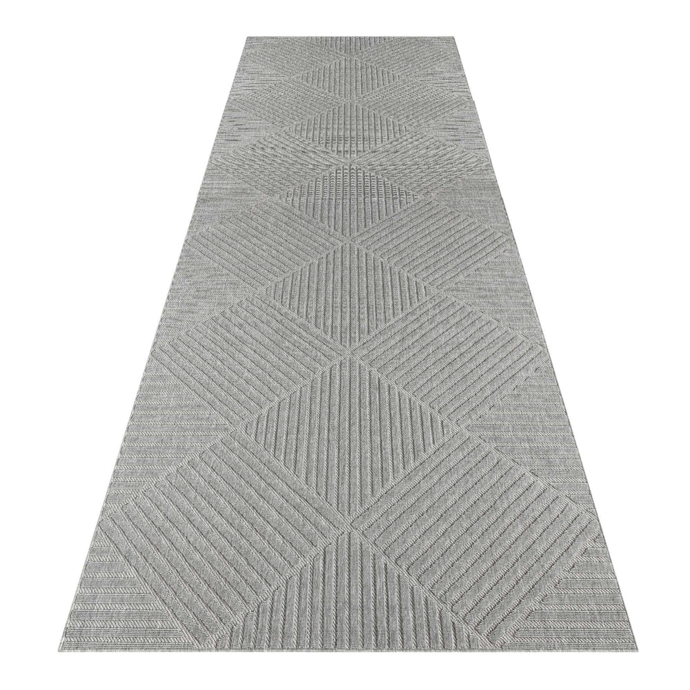This elegant indoor/outdoor collection has subtle, trellis patterns woven into a multi-textured polypropylene pile, sculpted with a high-and-low technique for a beautiful, subdued relief effect. This deluxe collection is suitable for outdoor use in covered patios, balconies, terraces, and courtyards with its latex base. These attractive rugs also have a shed-resistant and anti-static pile that is both durable and easy to maintain. Collection: Havana Collection Colour: Light Grey Shape: Runner Construction: Power-loomed Main Materials: Polypropylene Backing Materials: Latex Pile Height (approx.): 6 to 8mm Total Thickness - Pile + Base (approx.): 8 to 10mm Density (Points per SQM): 256.000 Distressed Finish (Y/N): N Fringes (Y/N): N Country of Origin: Turkey Warranty: 12 months