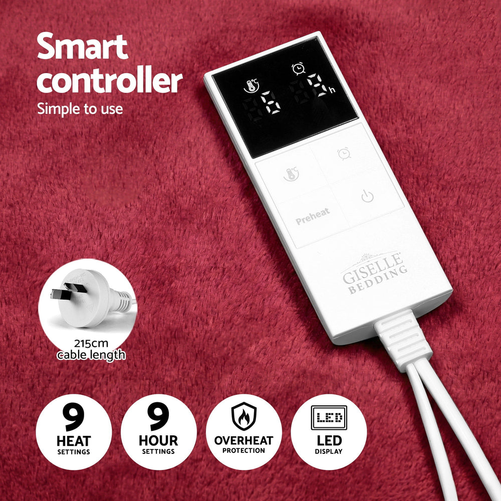 Giselle Electric Throw Rug Dual Side Fleece Flannel Heated Blanket Burgundy