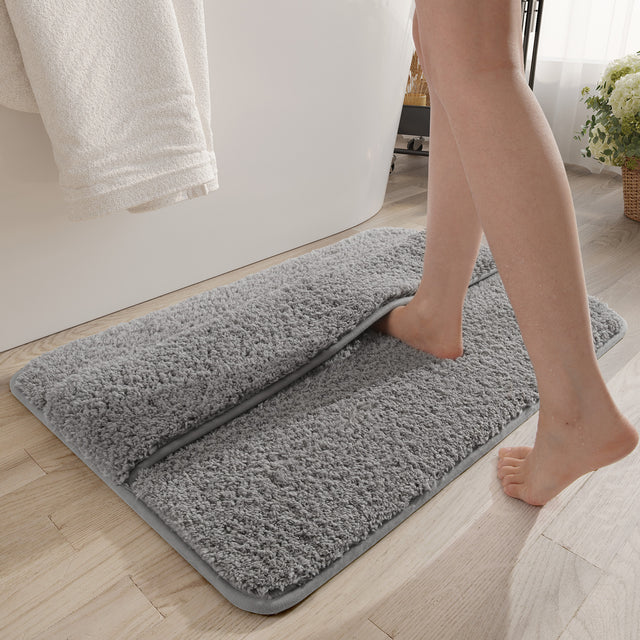 Grey Ultra Absorbent Plush Bath Mat - Non-Slip Bathroom Rug with Innovative Foot Drying Pocket