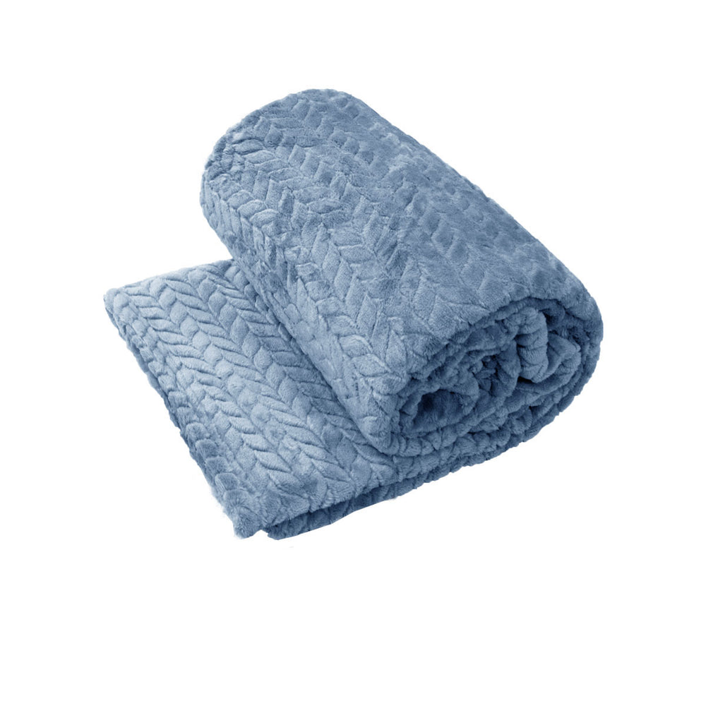 Herringbone Coral Fleece Blanket Throw Rug 150x200 cm Blue
