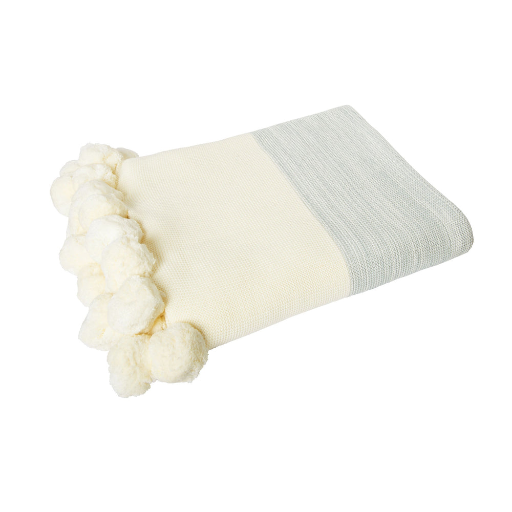 This range of sophisticated two-colour Calgary 100% Cotton Throw Rug Grey Rug 125 x 150 cm by J.elliot features a beautiful ivory knit paired with two-tone knit and soft pom poms on two of the edges. Perfect for the lounge or bedroom at a lovely size of 125x150cm. Made from soft touch 100% Cotton fabric.