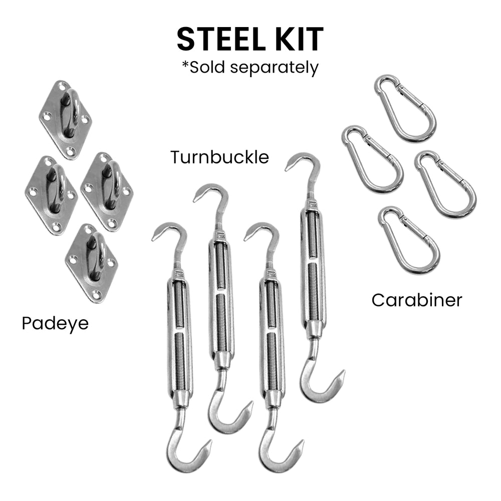 The following will be regarded as user caused damage to the product: over-tightening, stressing the material, storm and/or wind damage, wear caused by rubbing on roofs, external surfaces or tree branches, etc. No mountings or poles are supplied. Sizes shown are measured from the corner mounts. Installation should be at a minimum 25deg angle. Images are for illustration purposes only.