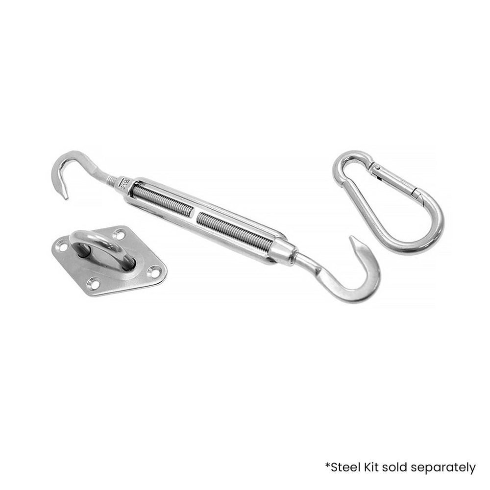The following will be regarded as user caused damage to the product: over-tightening, stressing the material, storm and/or wind damage, wear caused by rubbing on roofs, external surfaces or tree branches, etc. No mountings or poles are supplied. Sizes shown are measured from the corner mounts. Installation should be at a minimum 25deg angle. Images are for illustration purposes only.