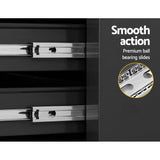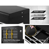 This robust, multi-drawer Giantz Tool Trolley is an essential for any workshop. Crafted from durable steel, it features smooth ball-bearing slides for easy access and a secure lock system for safety. Its spacious design includes varying drawer sizes to accommodate tools of all shapes, complete with non-slip liners. The chest is also mounted on omni-directional castors with locakble front wheels, ensuring a smooth maneuverability and stable positioning. Sleek and functional, it's perfect for organizing and protecting your valuable tools.