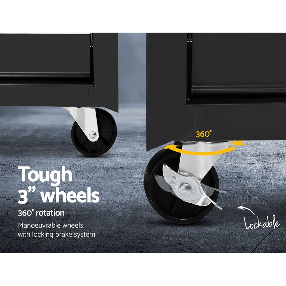 Giantz 17 Drawer Tool Box Cabinet Chest Trolley Toolbox Garage Storage Box Black