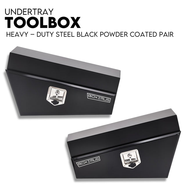 Under Tray Tool Box Underbody Pair Set 750mm Black Steel