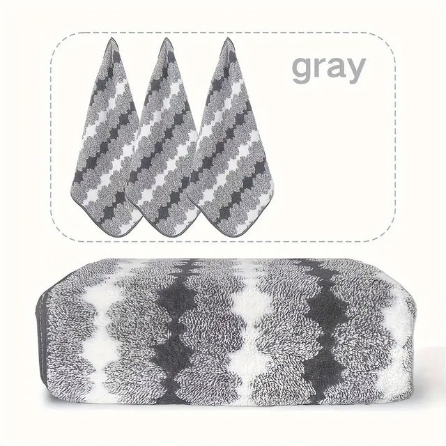 Grey Premium Coral Fleece Towel Set - 1 Bath Towel (88x170cm) + 3 Hand Towels (35x35cm) - Soft, Absorbent, and Quick-Drying
