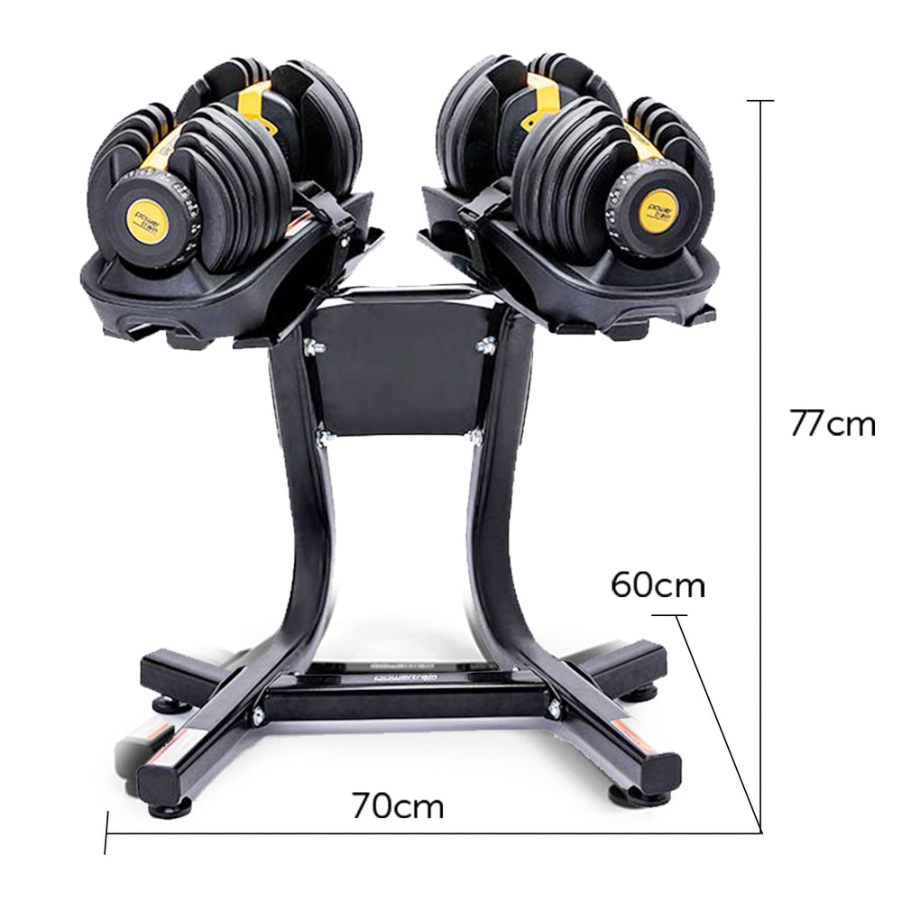 Powertrain 48KG Adjustable Dumbbell Set With Stand - Gold