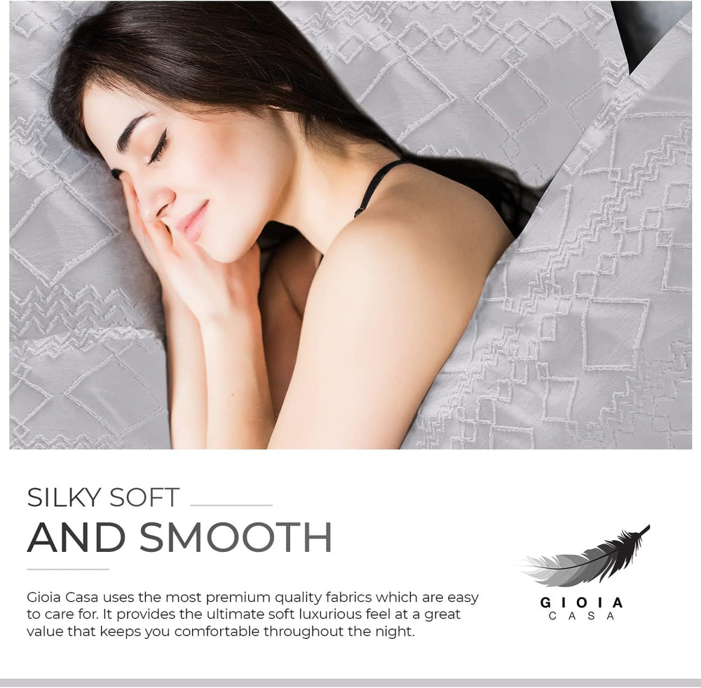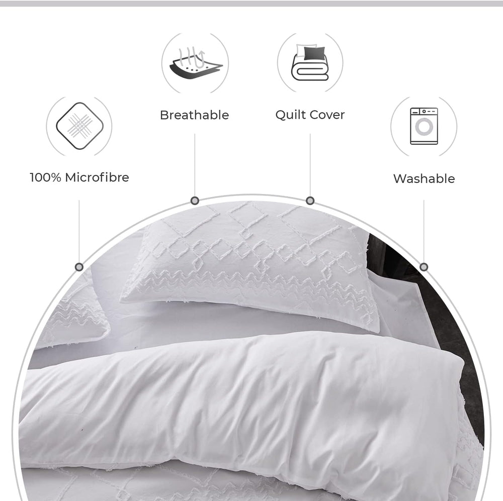 100% Premium Tufted Microfibre Quilt Cover Set - Ultra-Soft, Durable Embroidery Bedding Comforter Set - Machine Washable & Zipper Closure - White - King