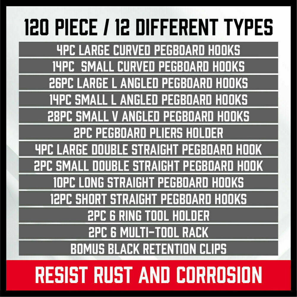 120Pc Pegboard Hooks Set Slat Wall Hanger Garage Organizer Shop Display Hanging