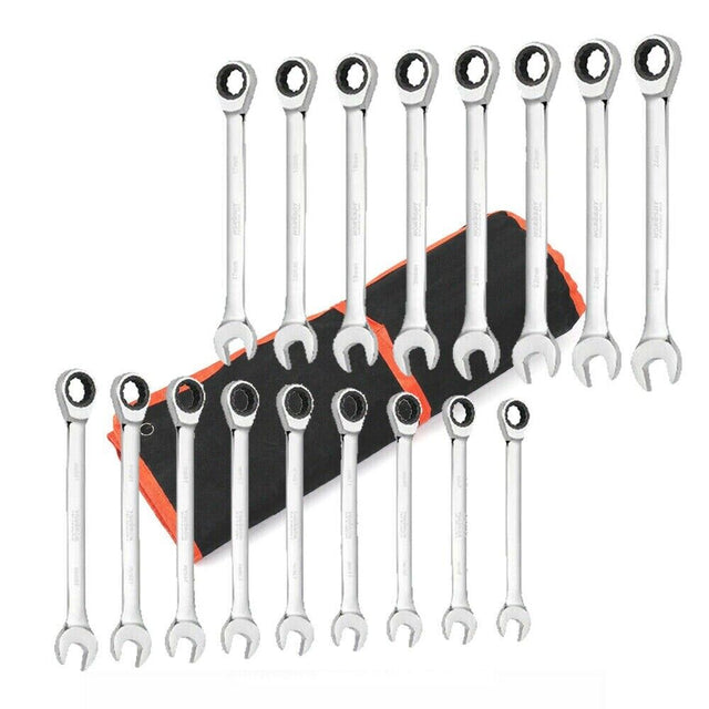 17Pc Ratchet Spanner Set Metric Combination Wrenches Open End Ring CR-V 8-24mm