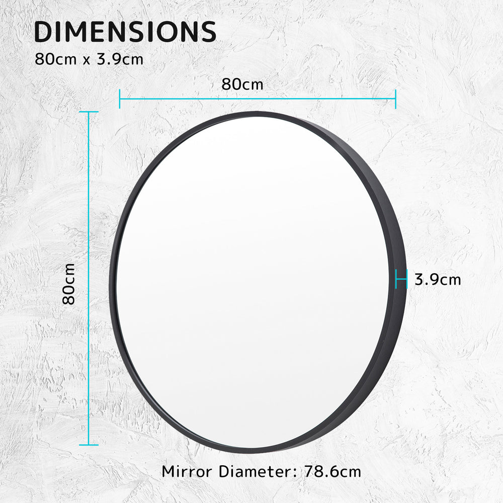 2 Set La Bella Wall Mirror Round Aluminum Frame Makeup Decor Bathroom Vanity 80cm - Black