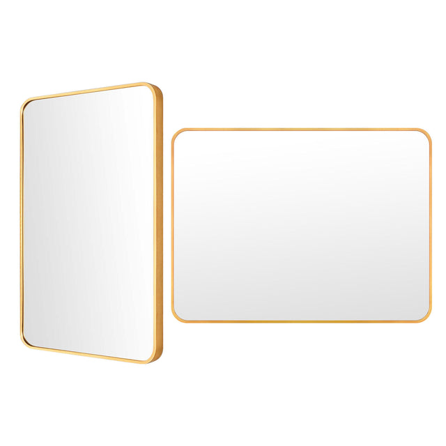 2 Set Wall Mirror Rectangular Aluminum Frame Bathroom 60x80cm GOLD