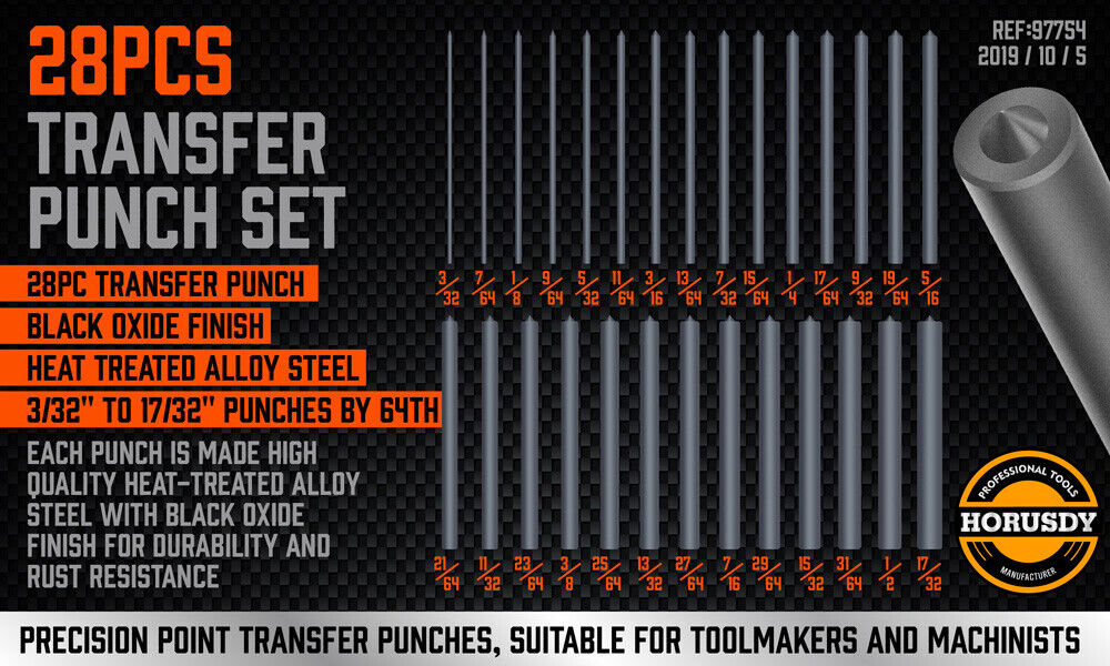 - Wide set of transfer punches from 3/32" to 17/32"