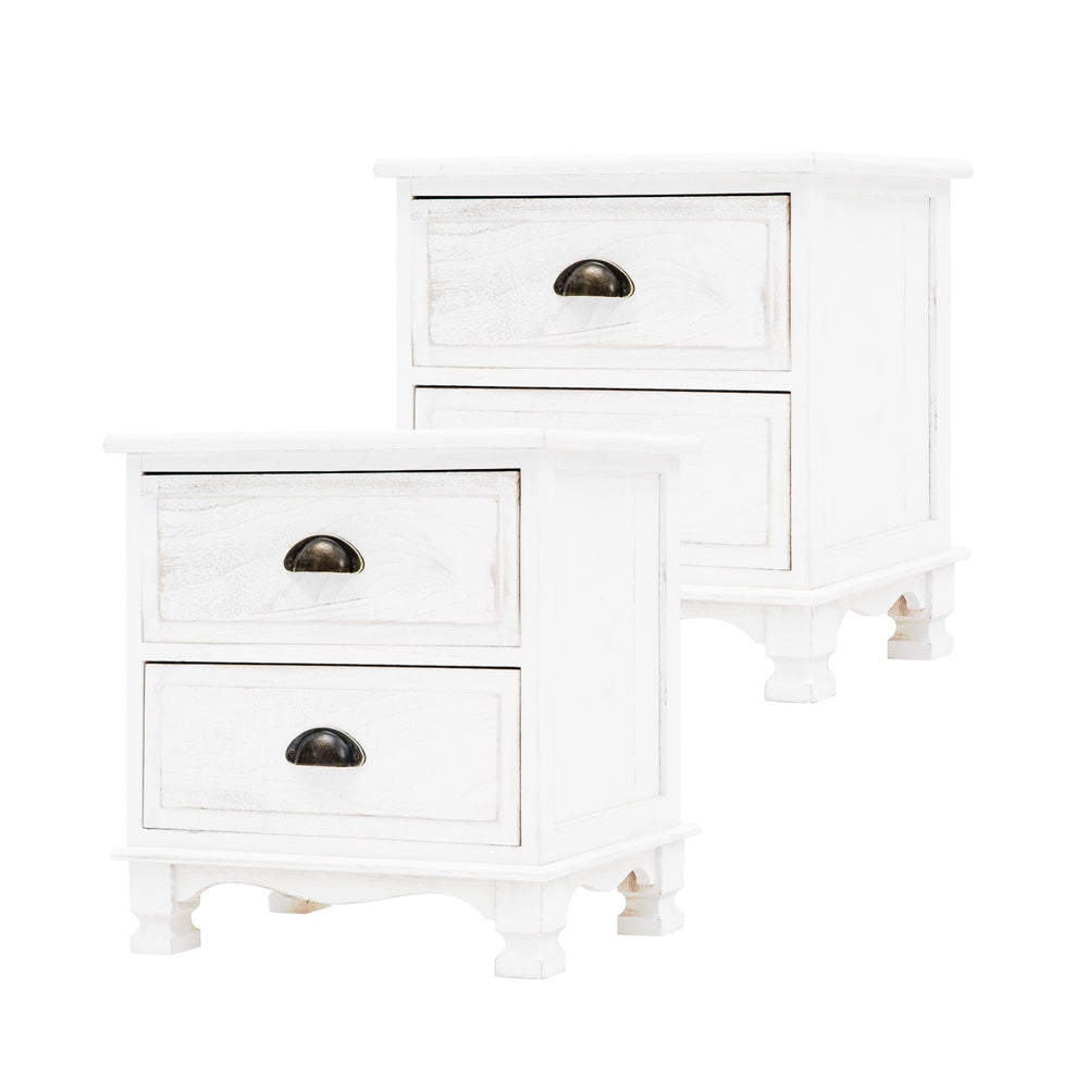 La Bella 2 Set Bedside Table 2 Drawer Vintage Side Table Storage Cabinet Bedroom LYDIA - White