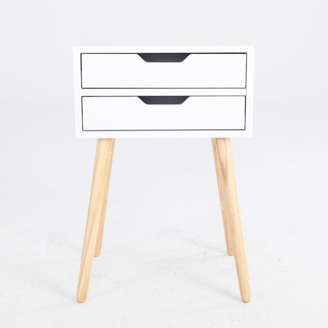 2X Bedside Table 2 Drawer Wood Leg SUZY WHITE