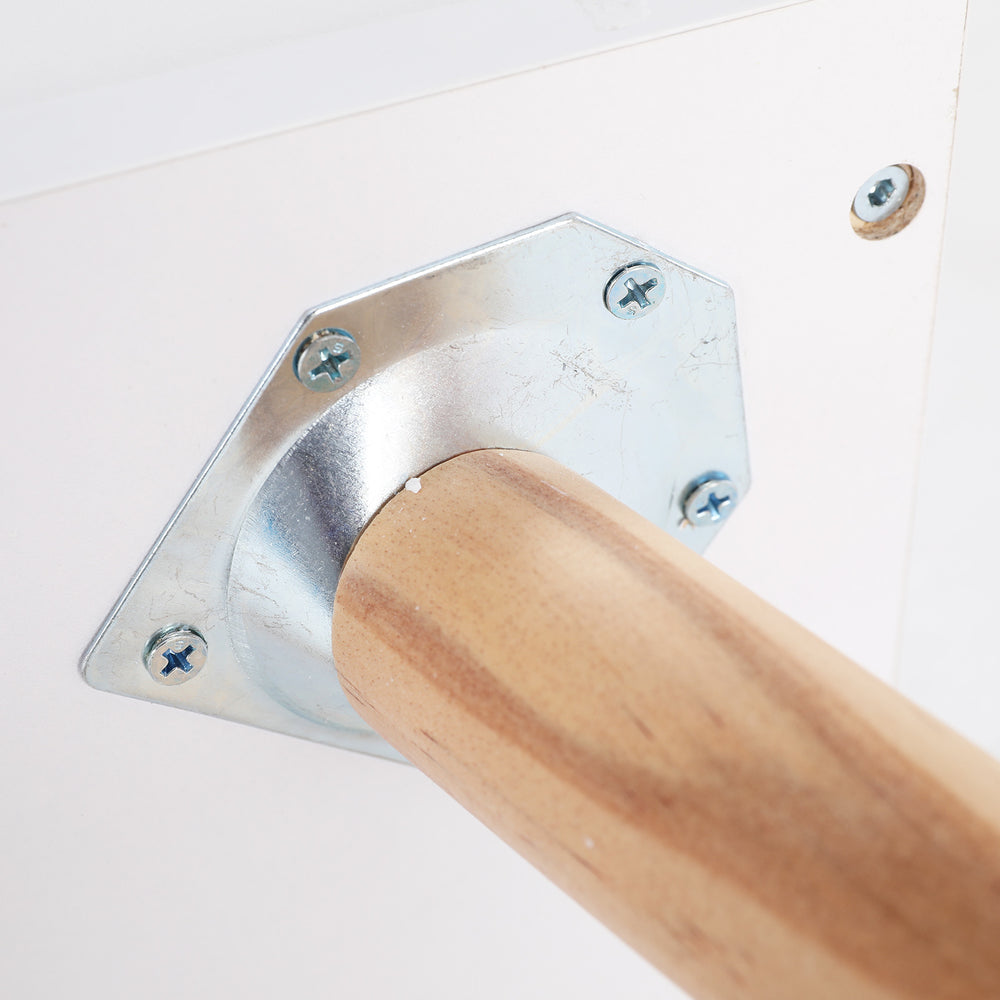 Crafted from environmentally friendly 15mm thick E1 MDF board, which is moisture resistant, sturdy, and durable. It also features gorgeous pinewood splayed legs.