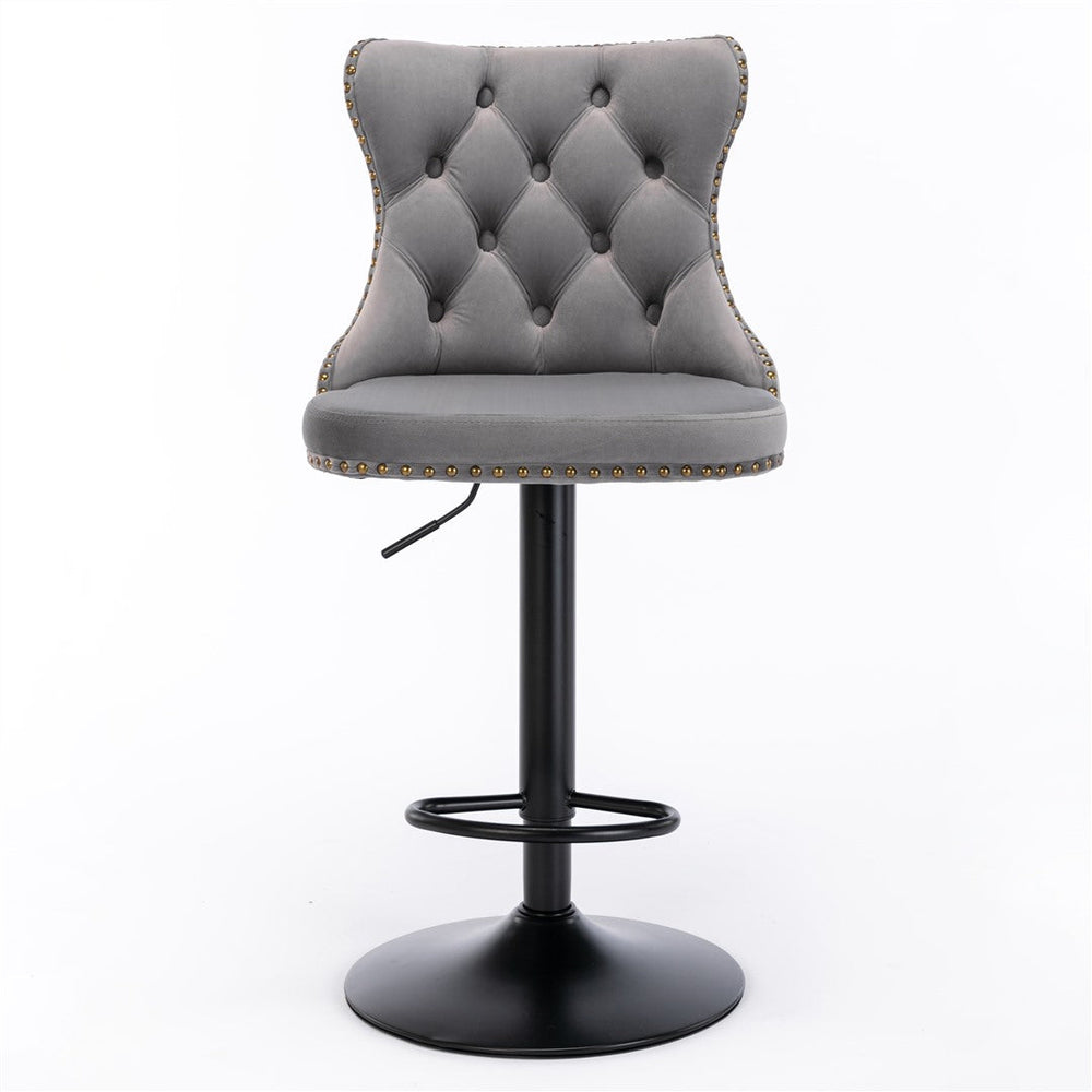 2x Height Adjustable Swivel Bar Stool Velvet Nailhead Barstool with Footrest