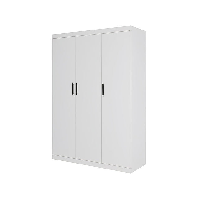 Add modern style and smart storage to your bedroom with this 3 Door Freestanding White Wardrobe. Crafted from steel plates with a sleek powder-coated surface, it's built for daily use. Stylish black metal handles provide a premium accent to its clean, contemporary design.