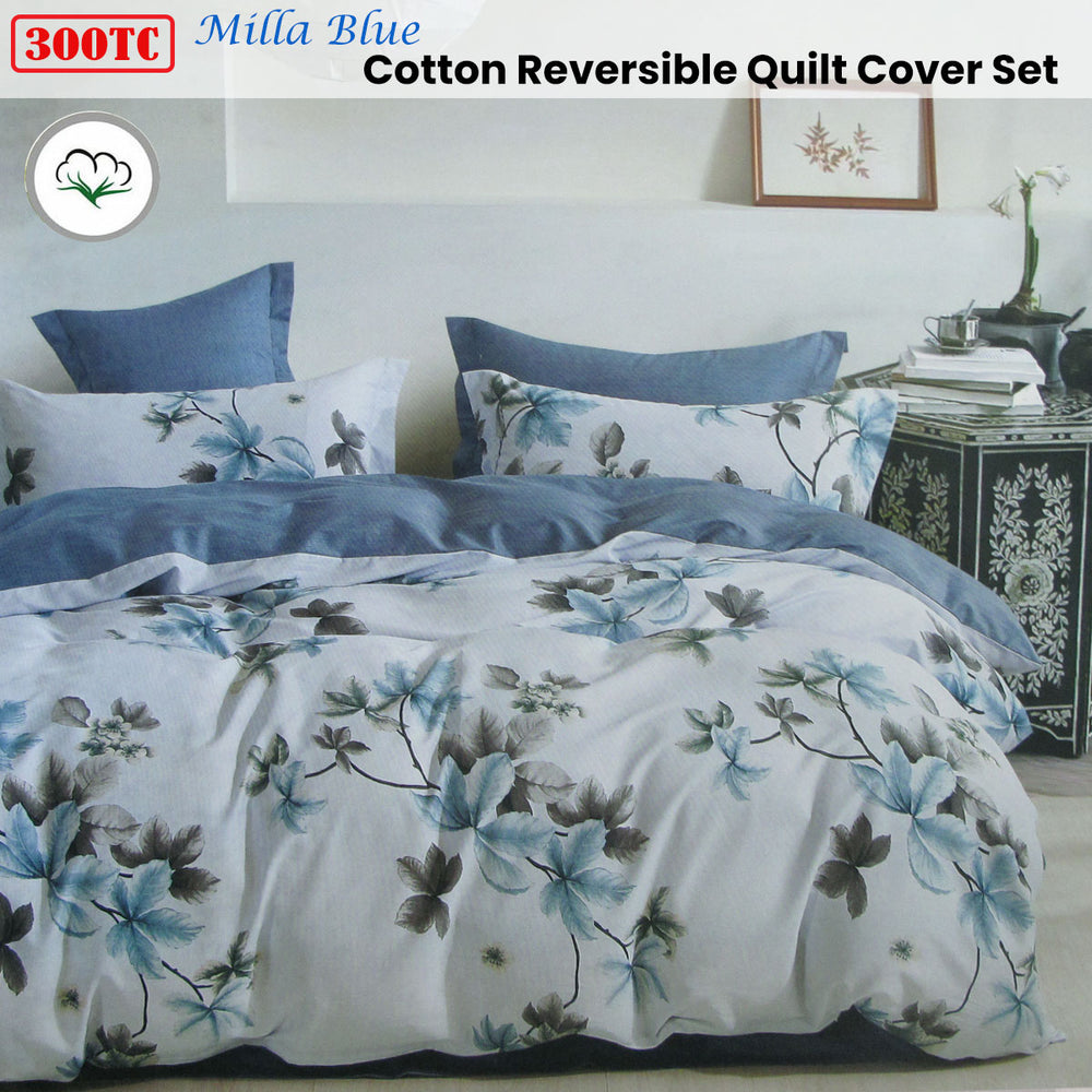 300TC Milla Blue Reversible Cotton Quilt Cover Set King