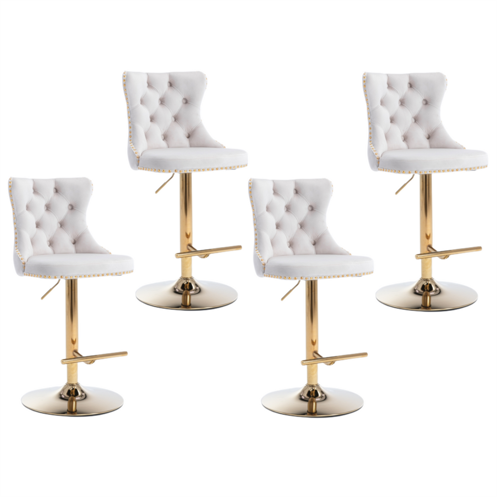 4x Height Adjustable Swivel Bar Stool Velvet Studs Barstool with Footrest and Golden Base- Beige