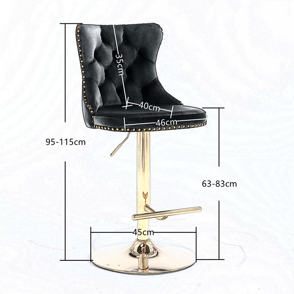 4x Height Adjustable Swivel Bar Stool Velvet Studs Barstool with Footrest and Golden Base- Black is backordered and will ship as soon as it is back in stock.