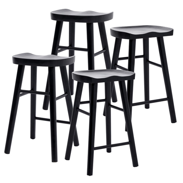 La Bella 4 Set Wooden Bar Stool 65cm FRIDA Pine Wood Counter Kitchen Barstools Cafe Dining Chair - Black