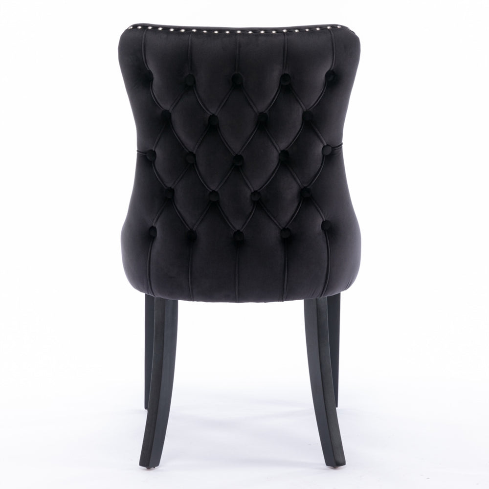 6x Velvet Upholstered Dining Tufted Chairs with Studs Trim and Solid Wood Legs-Black