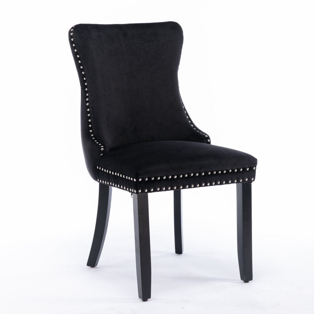 8x Velvet Upholstered Dining Tufted Chairs with Studs Trim and Solid Wood Legs-Black is backordered and will ship as soon as it is back in stock.
