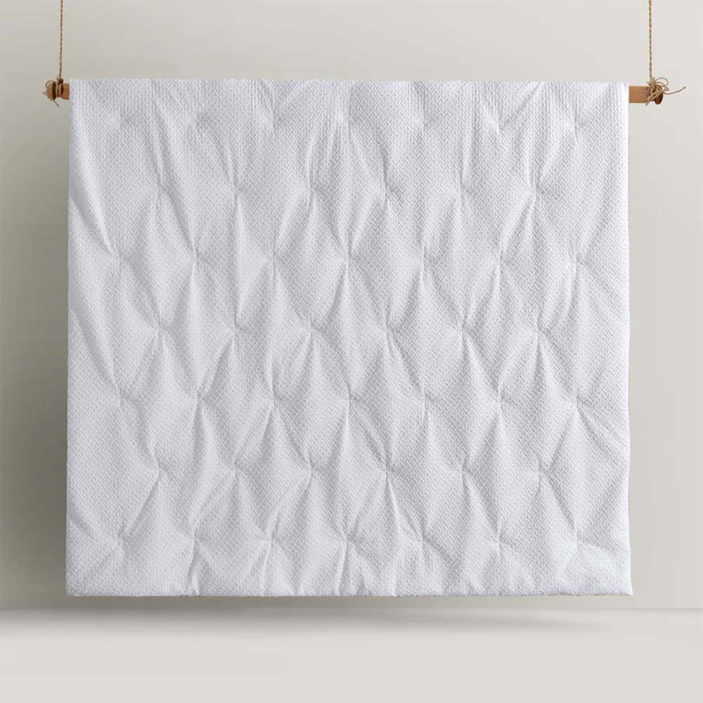 Uniquely textured with a clipped dot detail, the Dotty Clip White 3 Piece Jacquard Comforter Set by Accessorize is a beautiful update to classic white bedding. The polyester filled comforter features additional quilting detail for a warm and cosy bedroom.