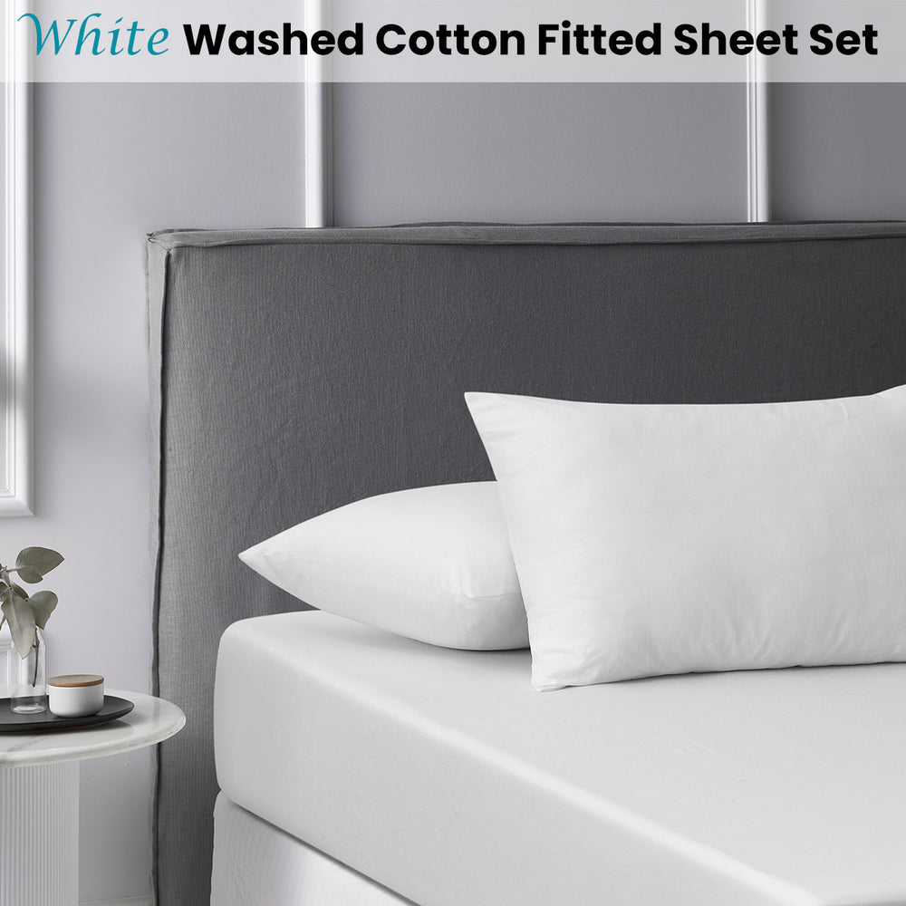 Accessorize White Washed Cotton Fitted Sheet Set King