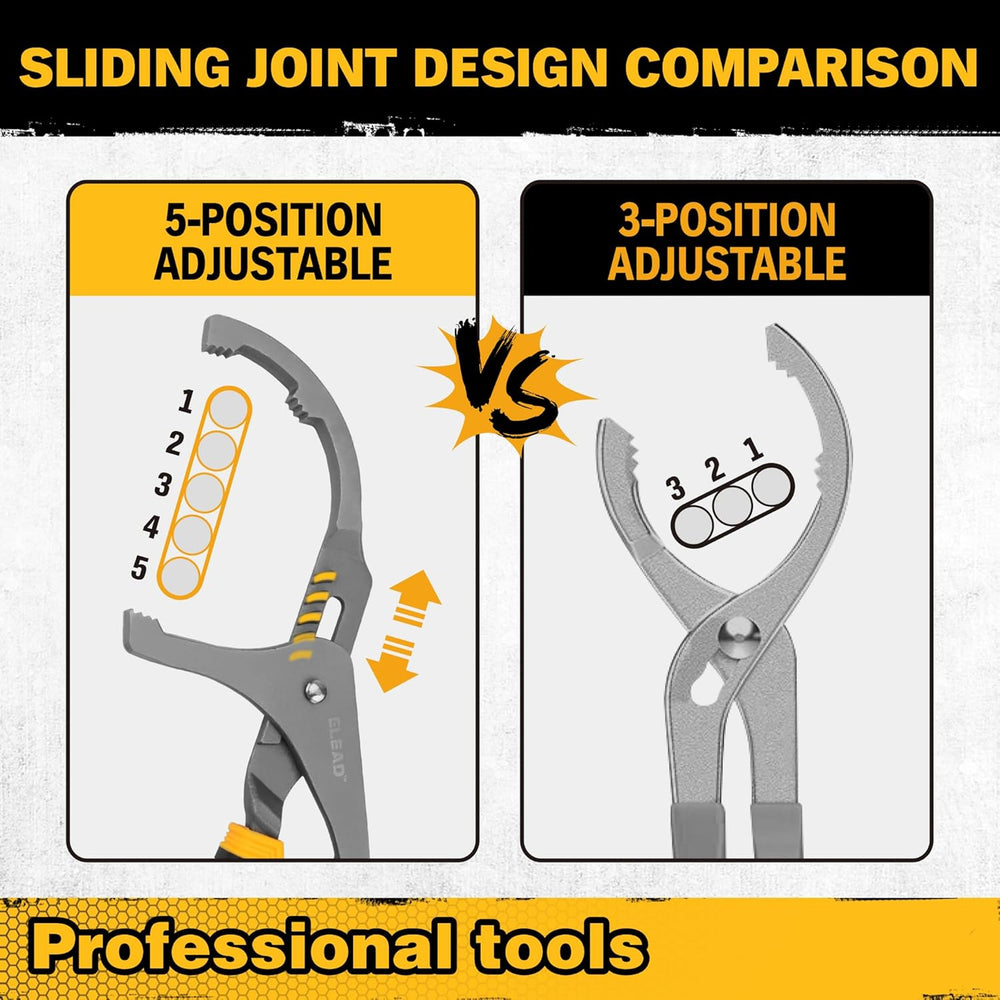- 【VERSATILE DESIGN】The set's 5-position slip joint design allows quick size adjustment, fitting filters with diameters of 1-3/4" to 3-3/4". This feature makes it a universal tool for various automotive maintenance tasks, essential for mechanics and DIY enthusiasts.