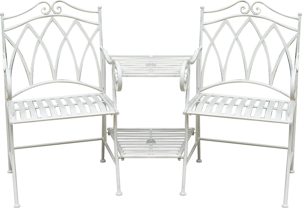This 3 piece Sage Companion set features two wrought iron seats and a center table, powder-coated for rust prevention and welded for extra strength. The elegant lines and tasteful sage colour create a peaceful feeling wherever you place this set.