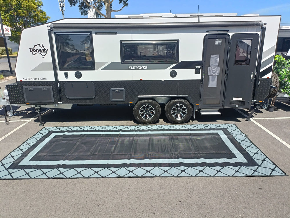 Perfectly designed for vans 12ft and under (4m body length) and smaller setups, our 3m x 2.4m recycled poly mat is a versatile, eco-friendly solution for all your outdoor needs. Combining style, durability, and sustainability, this mat is a must-have for camping, picnics, and more.