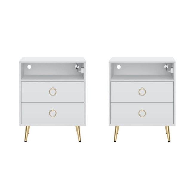 Amelia Modern LED Bedside table with USB and power socket white x 2