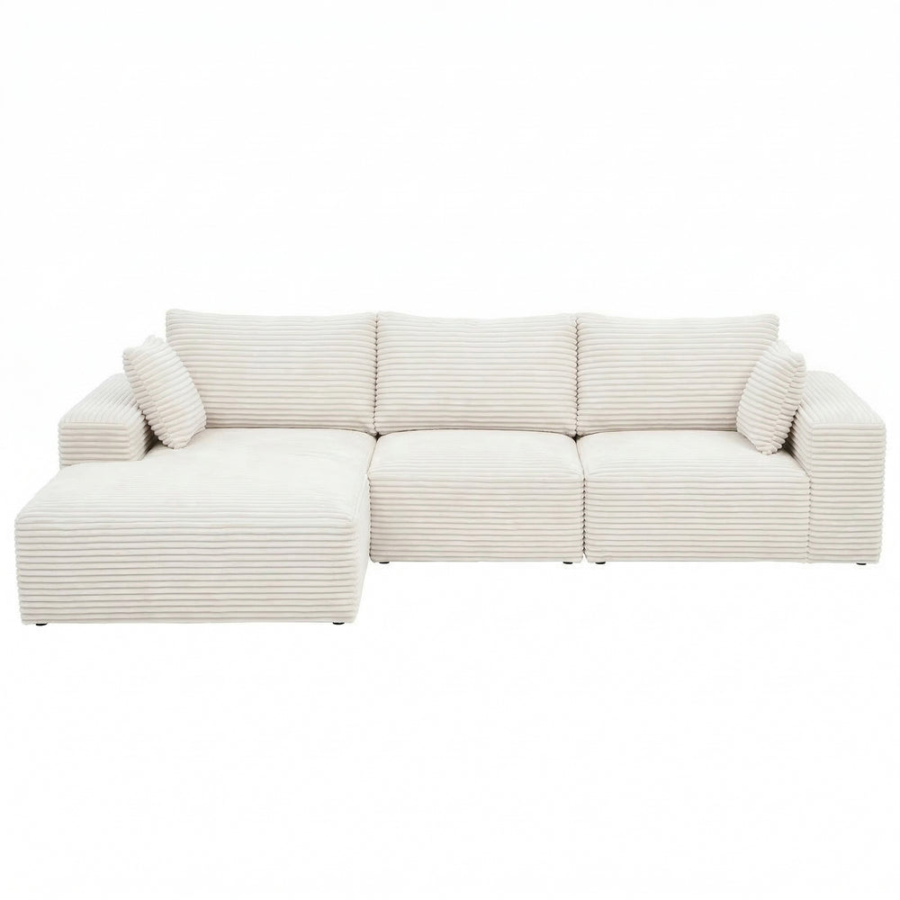 Artiss 3 Seater Modular Sofa Bed Sectional Boneless Couches for Living Room Corduroy Compressed Sofa White