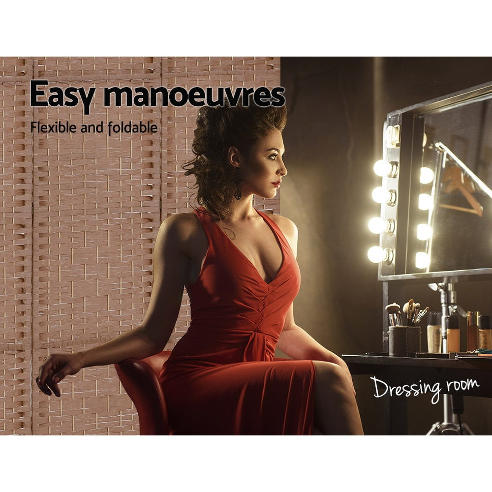 4 Panel Room Divider Screen 163x170cm Hand Woven Rattan