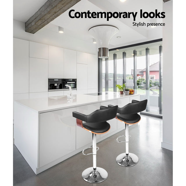 Artiss Bar Stools Gas Lift Leather w/Armrest Black