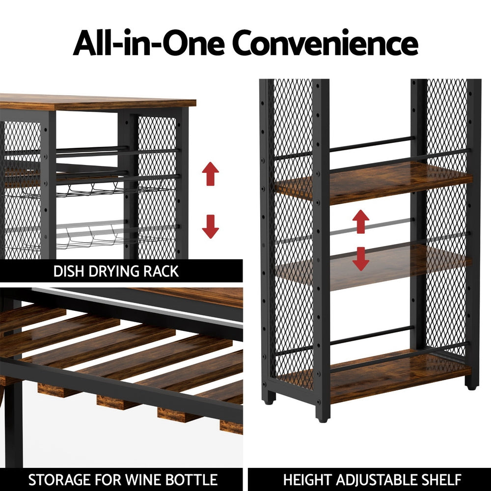 Artiss Industrial Bar Table with Wine Rack Built-in Cup Holder Extendable 140cm